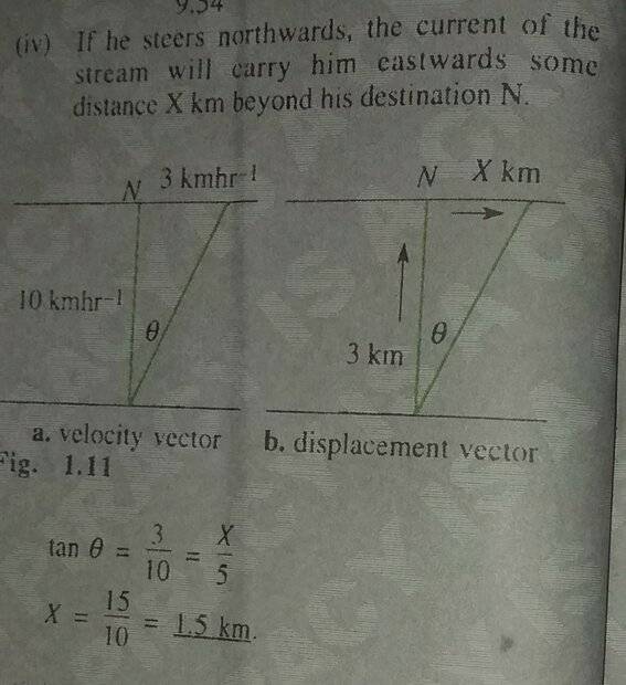 b. the 3km, is what? Is the displacement of the river or what? If it is, how was obtained because I know from the wording of the problem nothing like that was given. what was given 3 kmhr-1, which the displacement of the river. From the solving as it in the book I thinking that the 5km