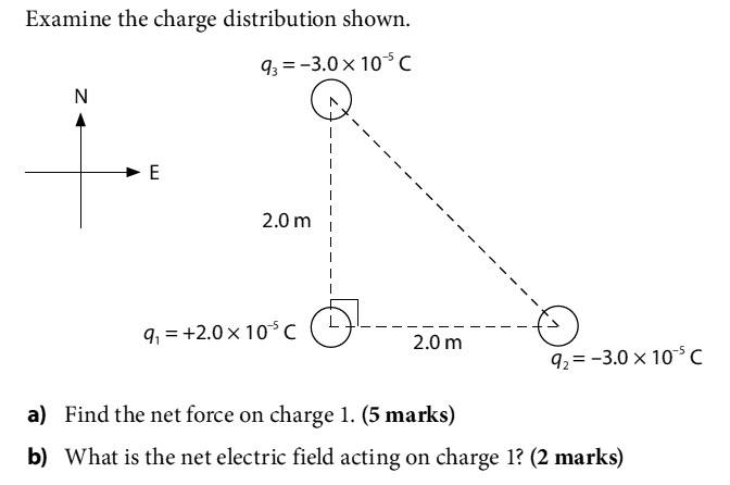 The discussion revolves around calculating the net electric force and net electric field acting on a specific charge, referred to as charge 1. Participants are addressing concepts related to electrostatics and the relationships between force and electric field.