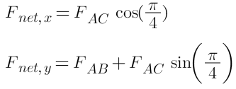 • Practice problems involving net force calculations in two dimensions