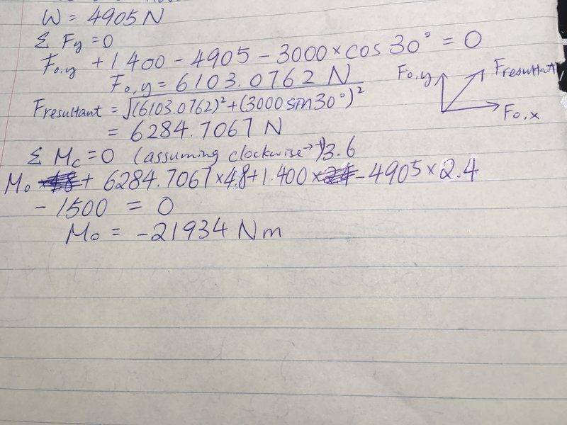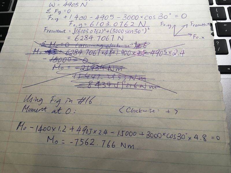 Several participants have provided feedback on the approaches taken, suggesting corrections and questioning the assumptions made. There is ongoing clarification about the treatment of forces and moments, with no clear consensus reached yet.