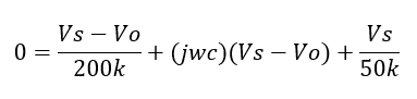 - Participants discuss the formulation of node equations, the role of source voltage, and the implications of impedance for capacitors versus inductors. Questions arise regarding the correct setup of equations and the inclusion of variables like ω in the final expressions.