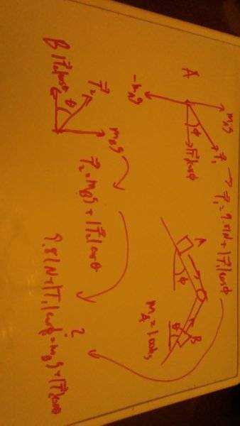 $$\vec {T}_1 = m_A g + \hline \vec {T}_1 \cos {\phi}$$
