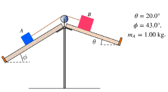 I have a double incline mass problem where Φ=43° and θ=20°, mass_A=1.00kg and they are connected by a massless string where the net force of each block is equal to 0.