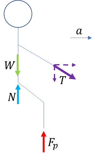 I still think it captures the basic idea. You can ride a bike like that. Sit on the seat, arms in tension as a two force member (fixed by rider + bike geometry), pedals pivot and the applied force stays pretty vertical on them. The part with the weight being not directly above the saddle...I'm not analyzing torques? There are some friction forces missing at the saddle and the pedal, but they would be fixed by the acceleration. If you rapidly change to a high gear and try to maintain acceleration you can start to come off the seat. I never said it was accurately capturing all ways of riding a bike...it's a crude model, first round draft to get some insight (probably my only one though).Orodruin said:That’s not a very accurate model to be honest.