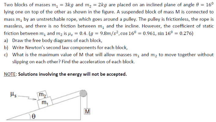 ##M*g - (m_1+m_2)*sin(16)=(m_1+m_2)*a##