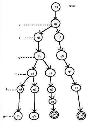 Could you explain to me why after having read the first 0, we can go to state $q_3$ ?