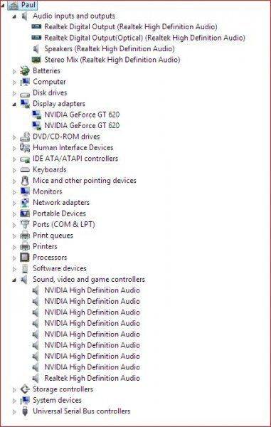 audio inputs ; I got the message that the existing drivers were up-to-date, but still no sound coming out and that all sound-related devices are working correctly.