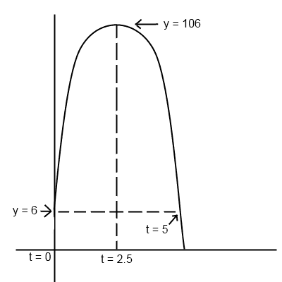 At time t = 0, a ball was thrown upward from an initial height of 6 feet. Until the ball hit the ground, its height, in feet, after $$t$$ seconds was given by the function $$h$$ above, in which $$c$$ and $$d$$ are positive constants. If the ball reached its maximum height of 106 feet at time $$t = 2.5$$, what was the height, in feet, of the ball at time $$t = 1$$?
