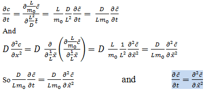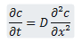 We let a dye diffuses into an environment of dimension L. We inject that dye into a box by one face, at t = 0 on x = 0. The linear density c follows that equation :
