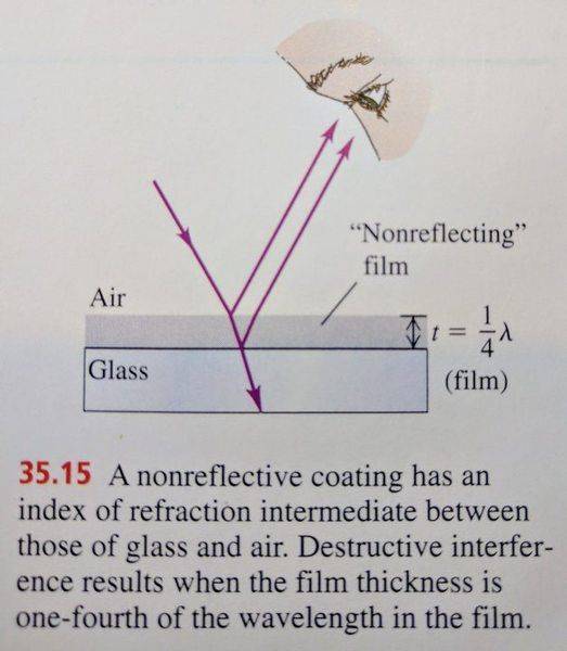 I've been learning about thin film interference, and it all makes sense to me except for the correlation between destructive interference caused by non-reflective coating on a lens and the amount of light getting through to the lens. Here's the general setup shown in my textbook: (also attached)