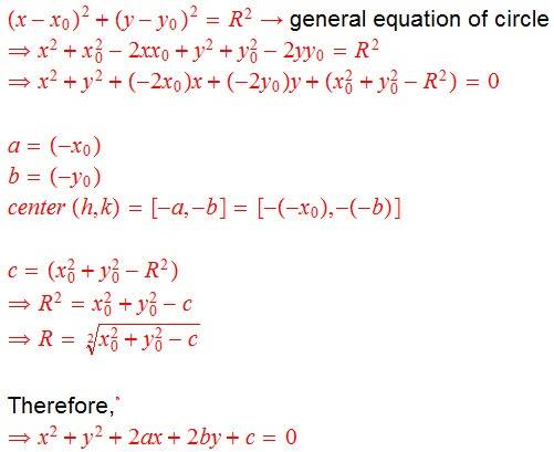 I have tried below to relate the "normal form of the conic section equation" to general equation of a circle with radius R and center at (x₀, y₀).