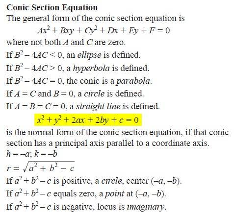 - Why this equation, x²+y²+2ax+2by+c=0, is called 'normal form of the conic section equation'.