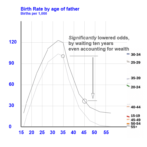 2) This is all ignoring the fact that many men may not want to have children at all, or that once they already have had children, they simply have less of a psychological need to have further children, which is also in line with the observation that the rate of child production reduces with age.