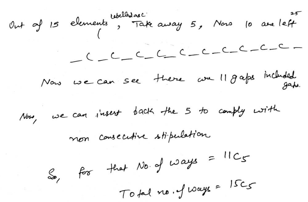 - What is the total number of ways of choosing 5 non consecutive numbers from the set of first 15 natural numbers?