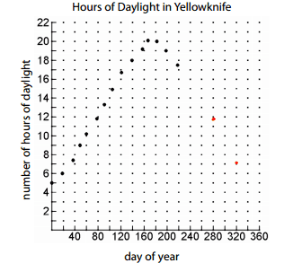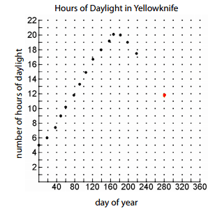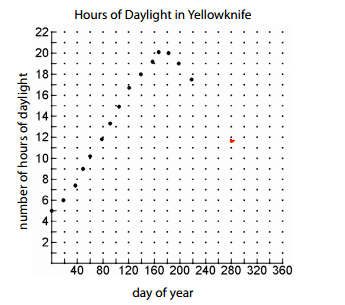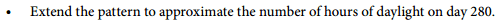 c) For day 280, the number of hours of daylight would be about 12 hrs: