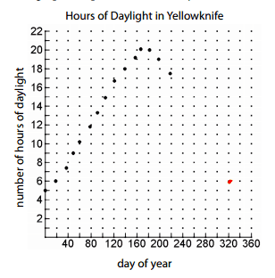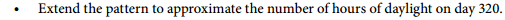 d) For day 320, the number of hours of daylight would be about 6 hrs:
