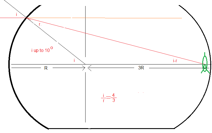 To make it look bigger, the glass (acrylic) needs to curve the other way - convex on the air side.