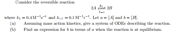 The discussion revolves around a question related to ordinary differential equations (ODEs) in the context of a reversible chemical reaction. Participants are exploring the formulation of the rate equations and the implications of certain constants in the equations.