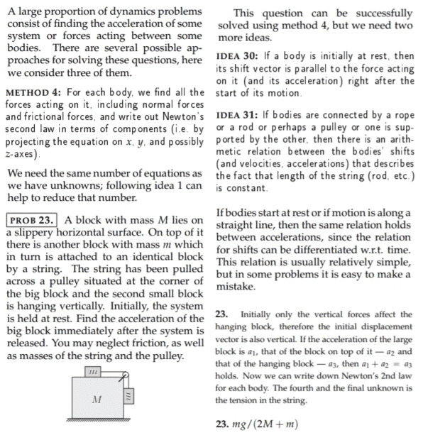 Given the problem as presented in the image above, if someone thinks that my supposition that the hanging ##m## block would not at any time after release descend vertically wrt its original position, but would remain at all times vertical wrt to the pulley, is incorrect, then that someone will please explain why.
