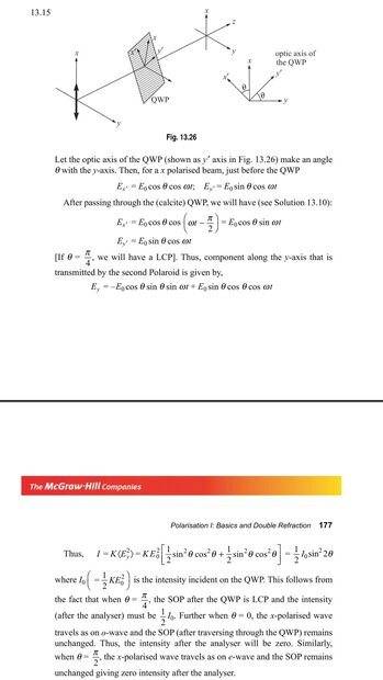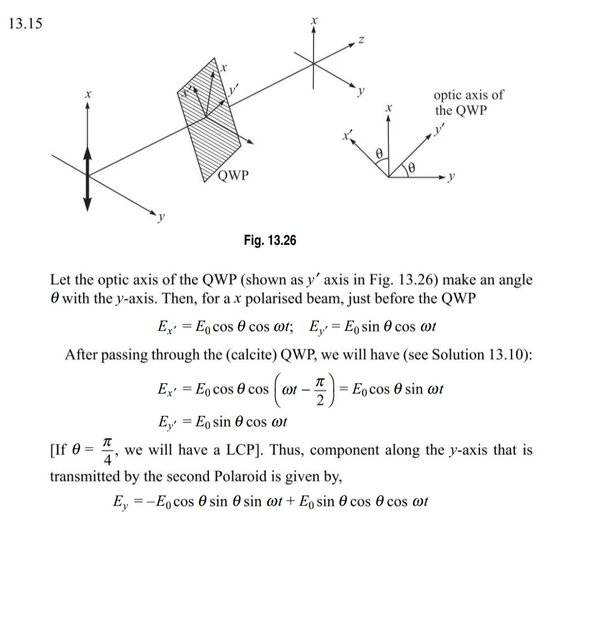 ii) Assuming it should indeed be cosθ & after making necessary QWP adjustments of π/2 in the equations, why does only the E(y) propagate here? (Is it due to the fact that it is an E Wave that's not absorbed inside?)