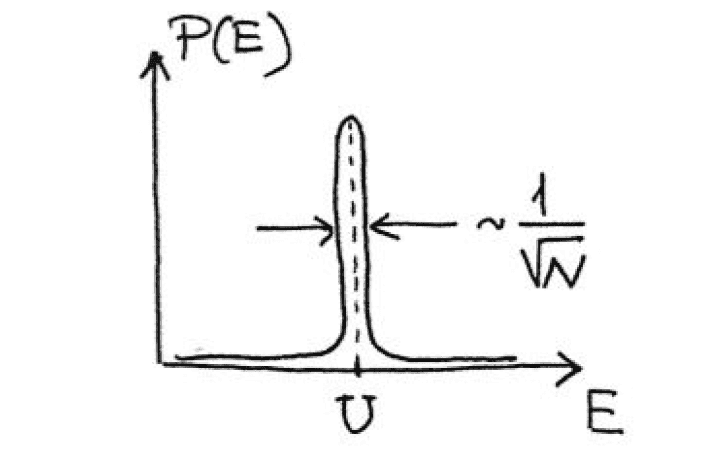 The author claims that the width of the distribution above is approximately ##\frac{\sigma _{E}}{\langle E\rangle}=\frac{\langle (E-\textrm {U})^{2} \rangle ^{1/2}}{\langle E\rangle}##. Where does this approximation come from? Shouldn't it be just ##\sigma _{E}=\langle (E-\textrm {U})^{2} \rangle ^{1/2}##?
