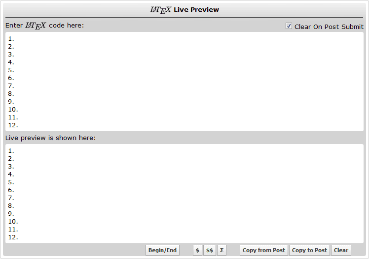Also I notice if the post has been created in an outside editor and c/p into MHB there's a lot of extra code to fool with which isn't great for the process of solving a problem.