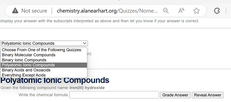 TL;DR Summary: Online Resources request for chemistry quizzes for practice