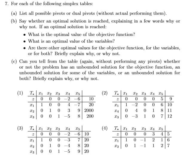 My area of expertise is elsewhere and I do not intent to become expert in the simplex method, just tryitng to understand the steps from my initial problem forumlation Tableau #1, to the final solution Tableau #4, the final solution is correct, btw. I also understand the steps from Tableau #1 to Tableau #2 (I guess that since this is the first step, even without negative values in the bottom row, we want to interate once, so chose smallest value -10). But then why in the next iteration do we chose 20 and not -15? No need to talk me through row manipulations. Could you just explain for me each time, why we choose the pivot coloumn and row? - Thanks a lot! Help is much appreciated on this! I guess in Tableau #1, the equality had to be slpit to two equalities, with slacks, because otherwise there is not a pivot for every row?