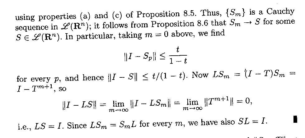 Can someone please demonstrate formally and rigorously that $$ \{ S_m \}$$ is a Cauchy sequence in $$\mathscr{L} ( \mathbb{R}^n )$$... ...