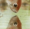 This is allegedly (part of) a bona fide photo of a critter, staring at its own reflection in the water.