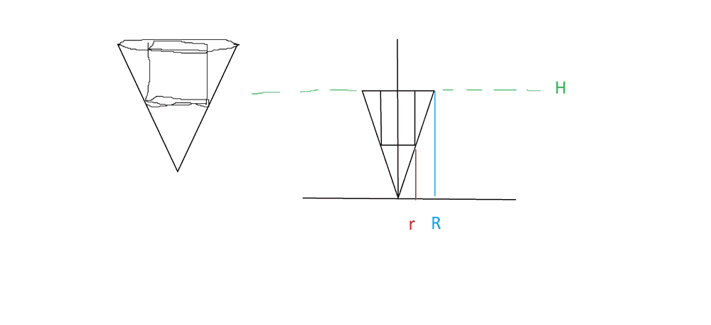 - [itex] V_{cone}=\frac{\pi}3R^2H[/itex]