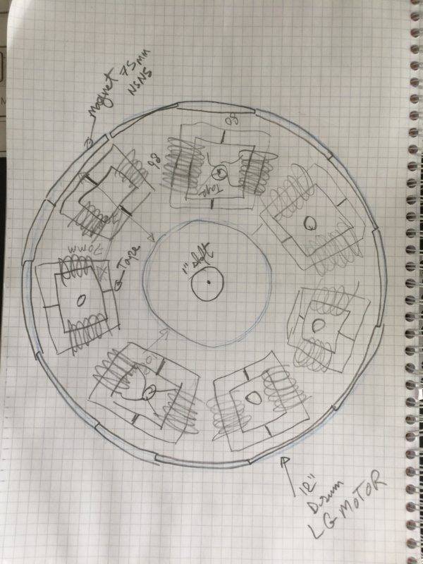 - Technical details about the LG motor's coil and pole configuration are discussed, with emphasis on the need for proper alignment to achieve efficient power generation.