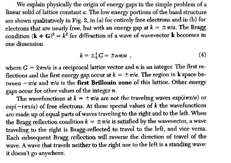 My book has a discussion of how the Bragg model can explain the origin of energy band gaps in solid. I have attached the relevant part of this discussion. I would very much like if someone could help me understand what it's basically trying to say.