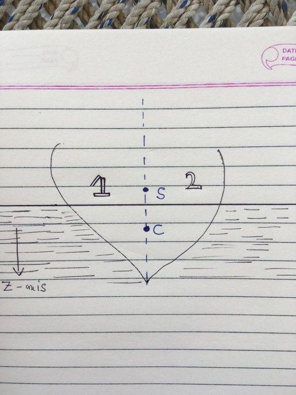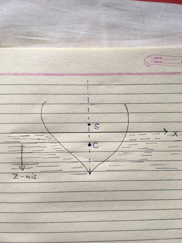Let’s say we have a boat whose longitudinal axis is the y-axis (which goes into the screen in the figure below) standing upright in a still water .