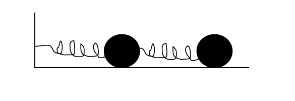 Q: Two masses m are connected by identical springs of constants k and they lie on a perfectly smooth surface. The extremity of one spring is fixed on the wall, the other one is loose.