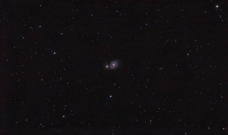 The Blowdryer Galaxy (a.k.a., M100, NGC 4321, Mirror Galaxy), imaged from my back patio, March-April 2024. The galaxy is about 56 million light-years away and can be found in the constellation Coma Berenices.