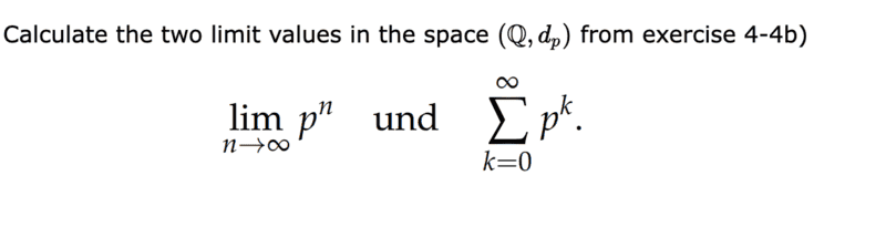 - Calculate the following limits ##\displaystyle{\lim_{n \to \infty}} p^n## and ##\sum\limits_{k=0}^{\infty} p^k##