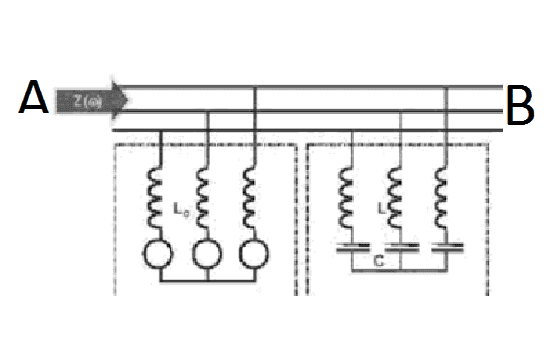 - Would this cause Z to go to infinity in theory assuming ideal components and thus stop the flow of 7th harmonic currents from A to B shown in the figure below?
