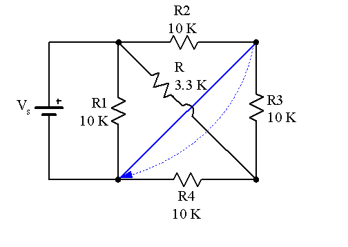 3. I tried combining the the two 10kohm resistors furthest away from the source in parallel. Then combined the top 10kohm resistor with the diagonal 3.3 ohm resistor. Then combining the top resistor and the resistor on the right in series then the two remaining resistors in parallel then using V=IR.