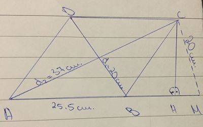 OK; then WHY did you post only this:STS said:S is the area. You move one of the diaganals to the side, then that forms a triangle. Then with Heron's formula you figure out the area of the triangle that has formed (AMC). That is suppose to help you figure out the area of the parallelogram using another formula, but I couldn't figure it out.