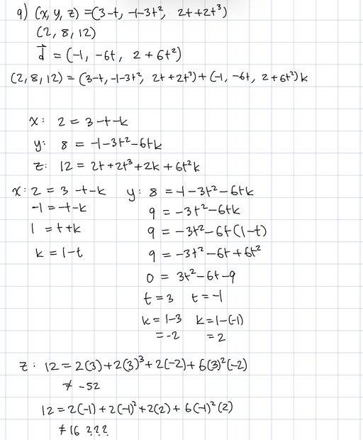 - (x, y, z) = (3 - t, -1 - 3t^2, 2t + 2t^3)