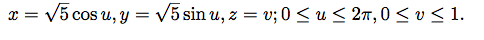 Find parametric equations for the portion of the cylinder x2 + y2 = 5 that extends between the planes z = 0 and z=1.