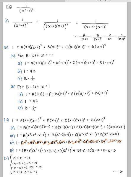 Im stuck at the very end, where it results in a true statement, yet I'm trying to get values for A and C (Step iv-c)