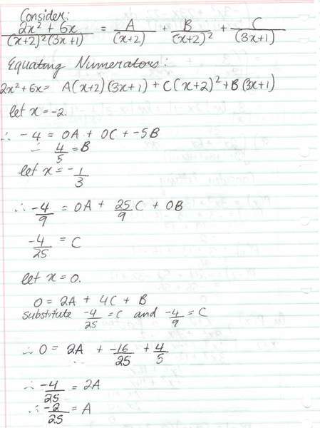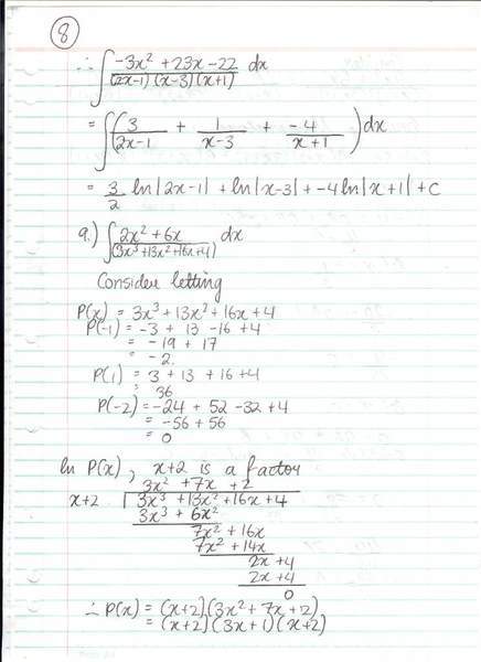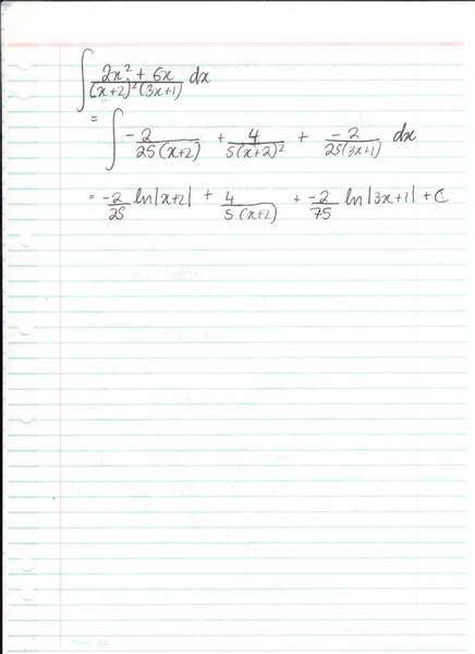 Hello, I was just wondering whether my answer for my partial fraction integration question was right. Attached are three pages of my working but the answer is at the bottom of the third page (027) and the question is at the top of the first page (025).