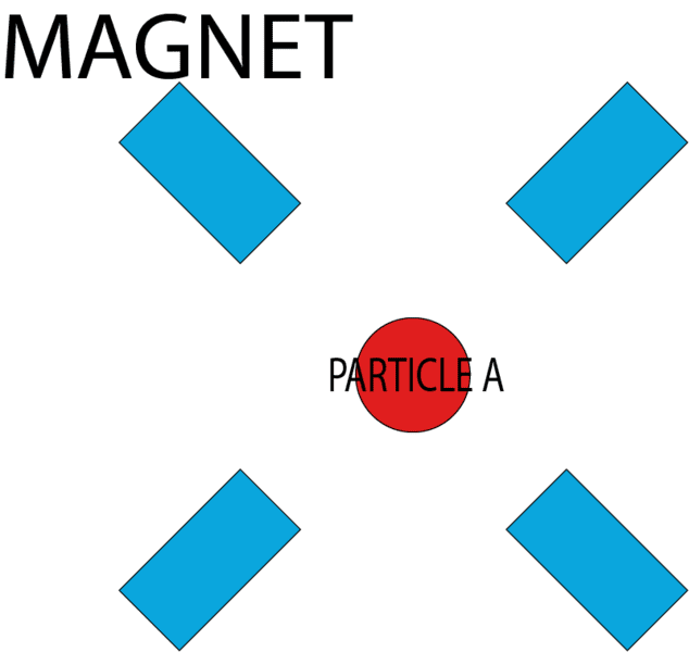 If particle A is lying in a point between 4 Magnets (This value is just arbitrary for demonstration purposes) :