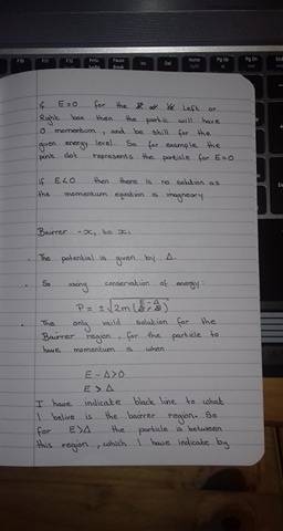 Here is my issue. I am very confused by the ##E<\Delta ## Beacuse I can't see how this has any momentum as it would produce an imagery number. And ye say that ##E<\Delta ## cannot be a solution yet on these diagrams he show the particle has momentum, at E=0 which can't be correct. I know I have this back to front, because he also mentions that at ##E>\Delta ## that is has less momentum than but I just can't see how, could someone please explain to me what my lecture is conveying here.