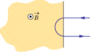 In Figure 28-28 (see attached), a charged particle enters a uniform magnetic field B with speed v0, moves through a half-circle in time T0, and then leaves the field.