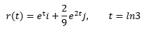 r(t) = eln3 i + 2/9 e2(ln3) j
