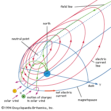 Let's suppose a solar electron moving directly towards Earth's equator at a high speed. This electron meets Earth's magnetic field, which points to the north, at a distance ten times the Earth's radius, where magnetic field is almost uniform. Which will be the direction this electron describes?