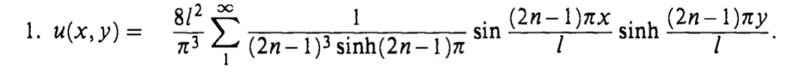 u(x,y) = sum from n = 1 to infinity of (sin(n*pi*x/l)(α_n*cosh(n*pi*y/l)+β_b*sinh(n*pi*y/l))